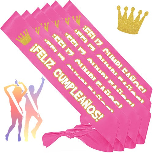 Banda de tela rosa con corona -Feliz Cumpleaños-