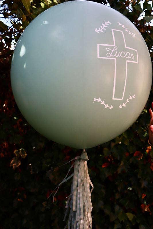 Globo XL Personalizado con Lazos y Cruz de Tela Jo&Co