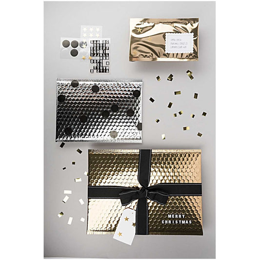 Etiqueta adhesiva blanca con borde dorado- pack 12 uds.