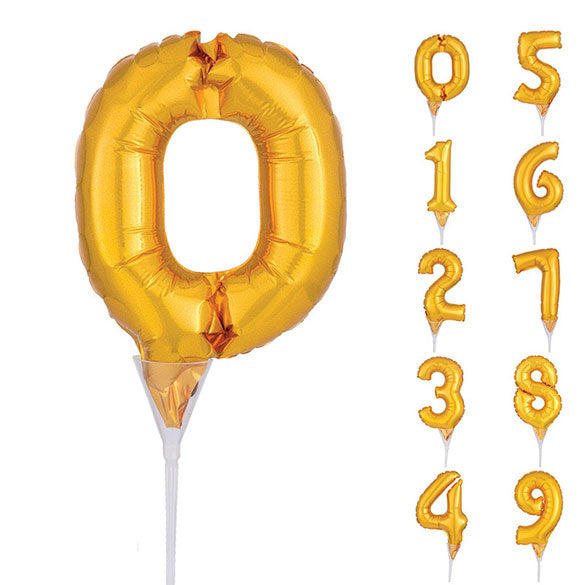 Globo Metálico con forma de Número del 0 al 9, de color dorado por ambas caras.