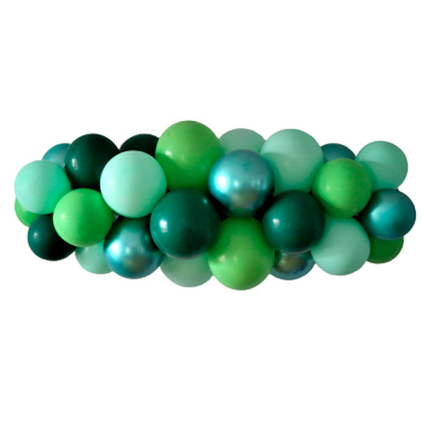 Hemos preparado esta preciosa guirnalda de globos de látex inflados con aire combinado colores en tonos verdes y otros colores que combinan de 1 metro de largo para decorar tu fiesta.