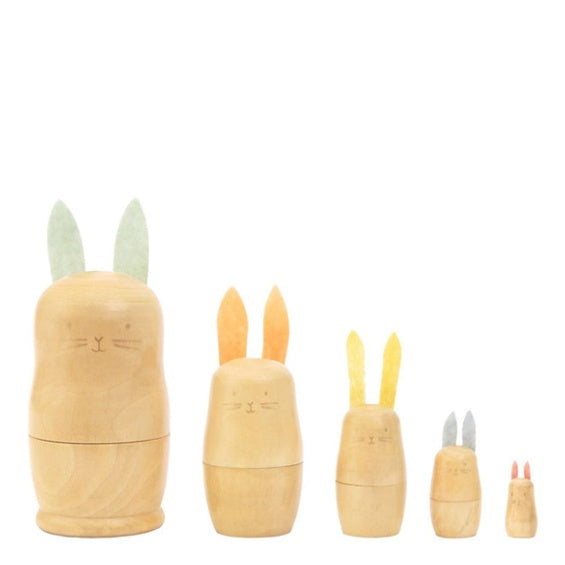 Quien no adora a los conejos, pues Meri Meri presenta a estos magníficos conejitos apilables de madera.