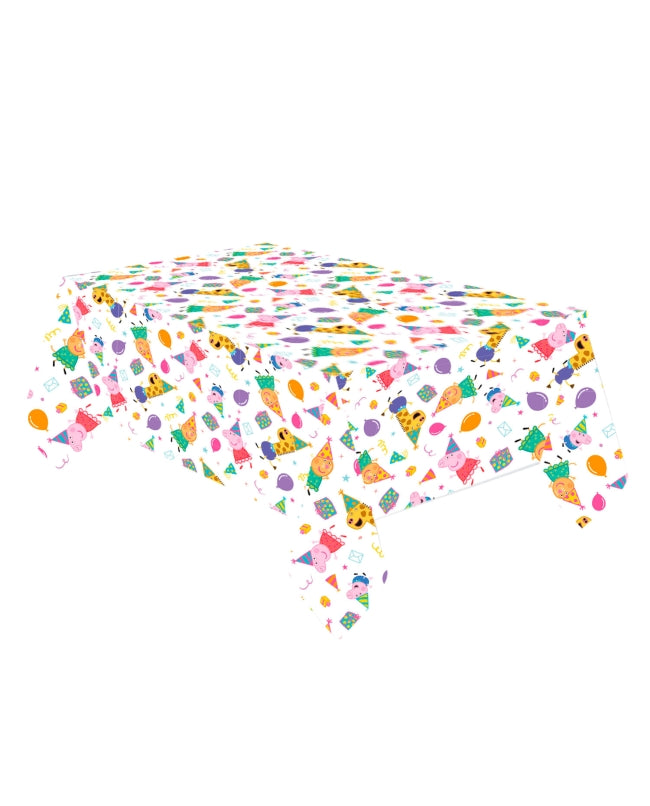 Mantel Peppa Pig de plástico, de 180 x 120 cm. compuesto por 1 capa de plástico para evitar que traspase cualquier líquido. Este mantel de Peppa Pig de plástico es fantástico para todo tipo de fiestas y celebraciones. Ideal para fiestas de personajes Peppa Pig. Combina con la vajilla desechable Peppa Pig.