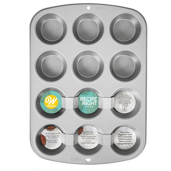 Molde Recipe Rigth de Wilton para hornear de aluminio de calidad de una sola pieza. Ideal para tamaños estándar de muffins y cupcakes (5,00 cm de diámetro).
