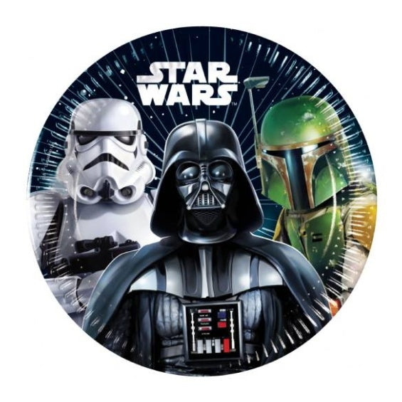 Platos desechables Star Wars de cartón encerado, de 20 cm. Apto para comida fría o caliente. Estos Platos de usar y tirar Star Wars son fantásticos para todo tipo de fiestas y celebraciones. Ideales para fiestas de Star Wars. Combina con la vajilla desechable Star Wars.