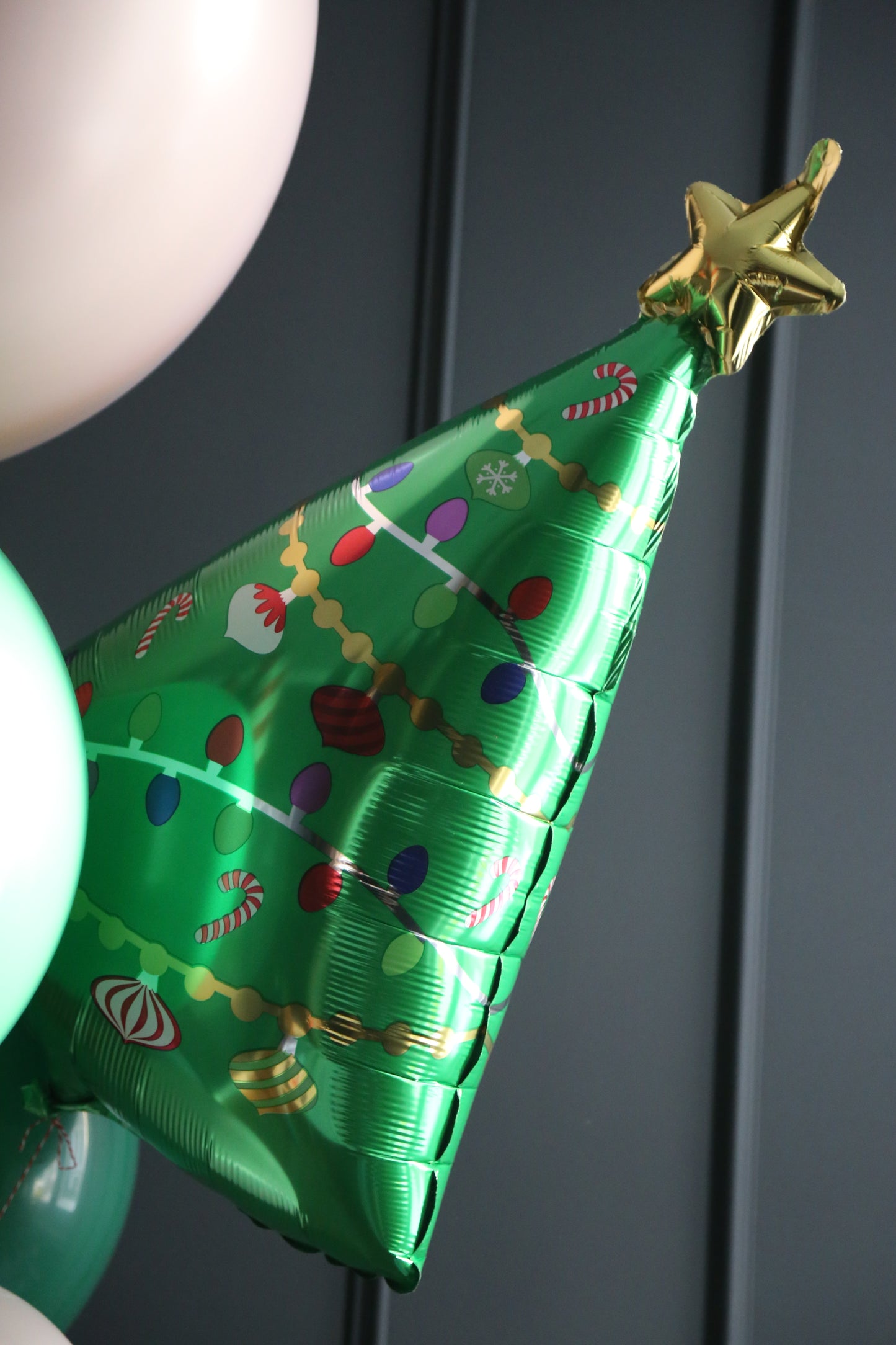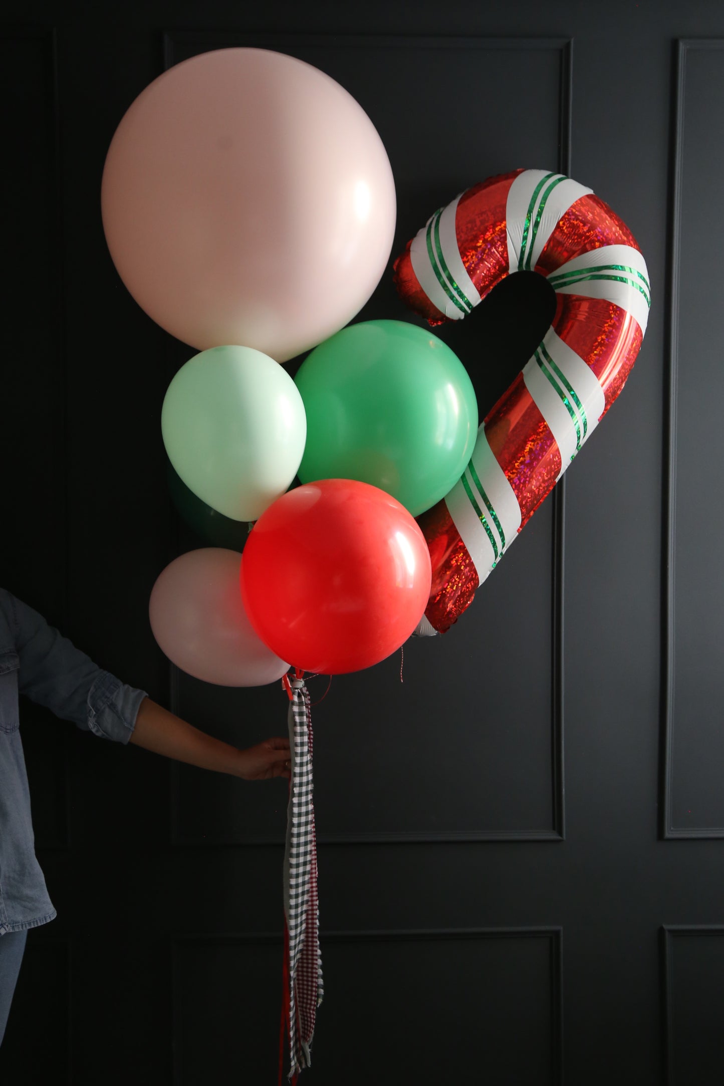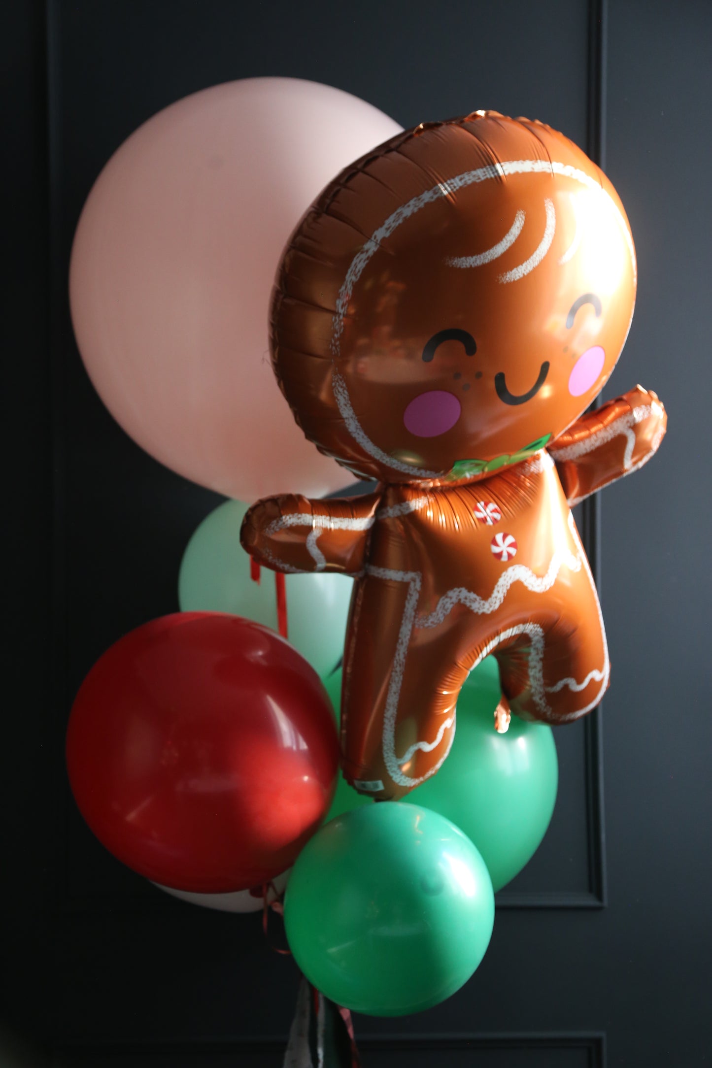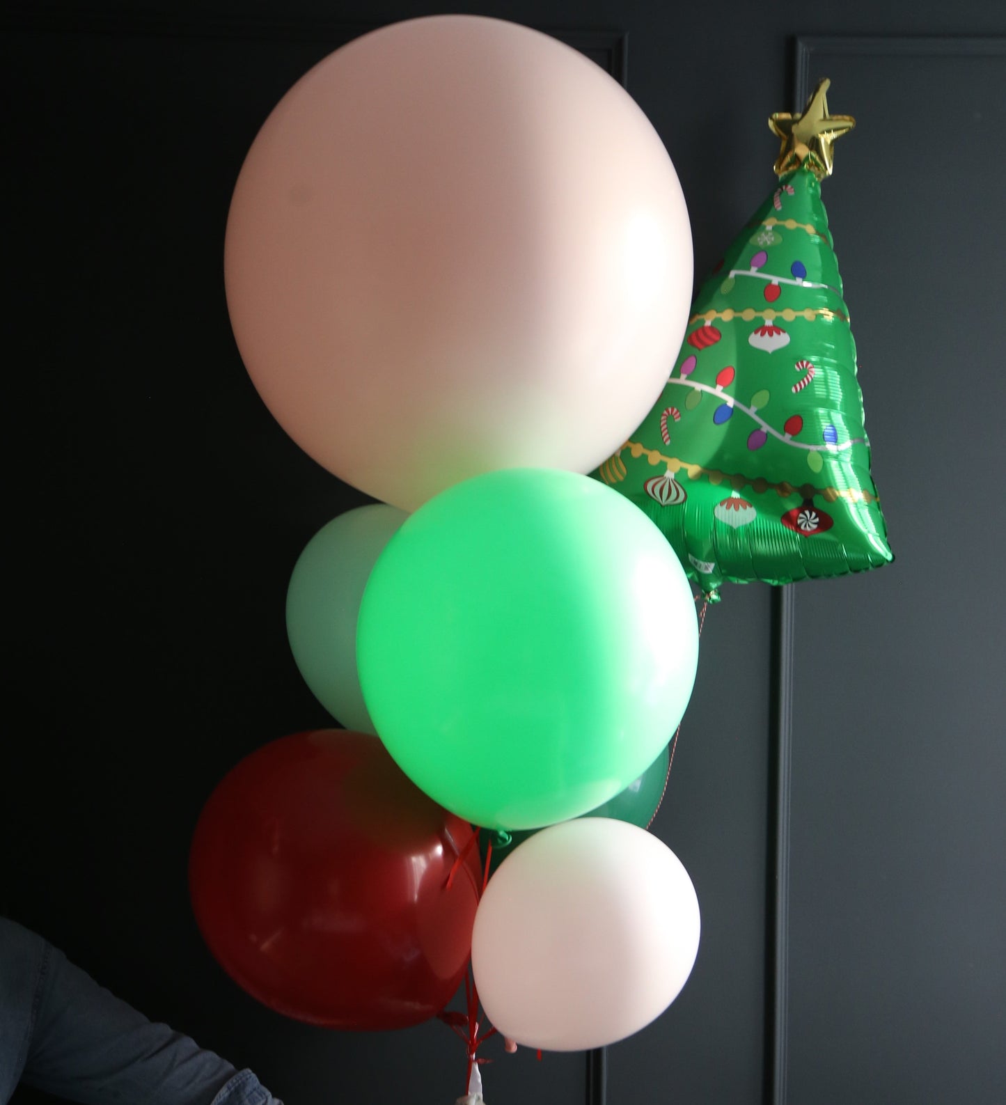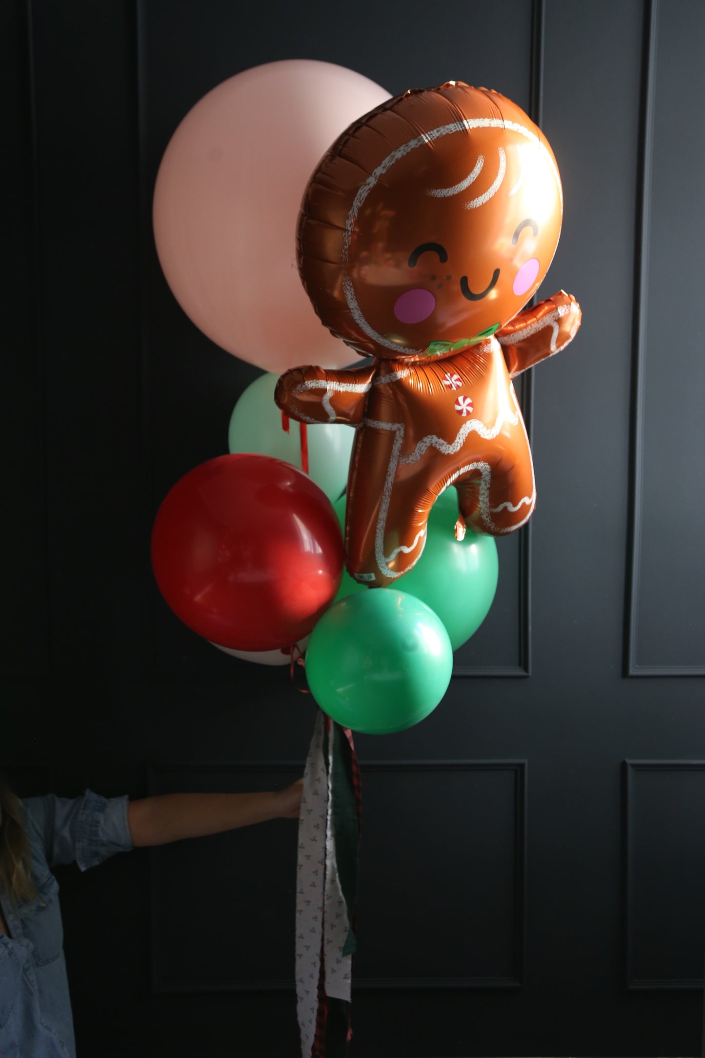 Este ramo de globos de látex 100% biodegradables tiene un globo de 60cm, dos globos de 45cm y tres globos de 30cm. Puedes elegir el globo con forma navideña, árbol de navidad, muñeco de jengibre o bastón de caramelo y dos lazos de tela de estampado navidad. Puedes pedirlo sin mensaje o personalizar el globo XL del ramo. Incluye Pesa.