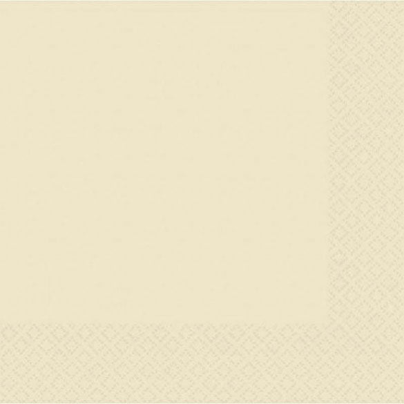 Servilletas de papel crema, de 25 x 25 cm. de 2 capas. Estas servilletas crema de papel son fantásticas para todo tipo de fiestas y celebraciones. Ideales para fiestas de color crema. Combina con la vajilla desechable crema.