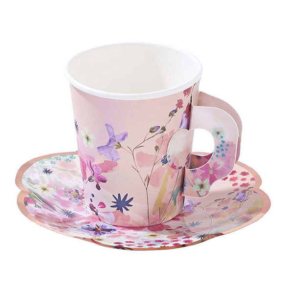 Tazas y Plato flores - pack 12 uds.