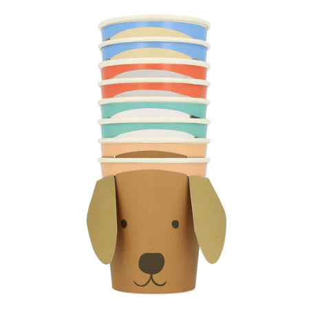 Estos vasos de perrito quedarán perfectos en tu fiesta de temática perritos. Tienen todo tipo de detalles, y estan adornados con las orejitas de los perritos. Aptos para bebidas frías y calientes Pack de 8 de 256 ml.